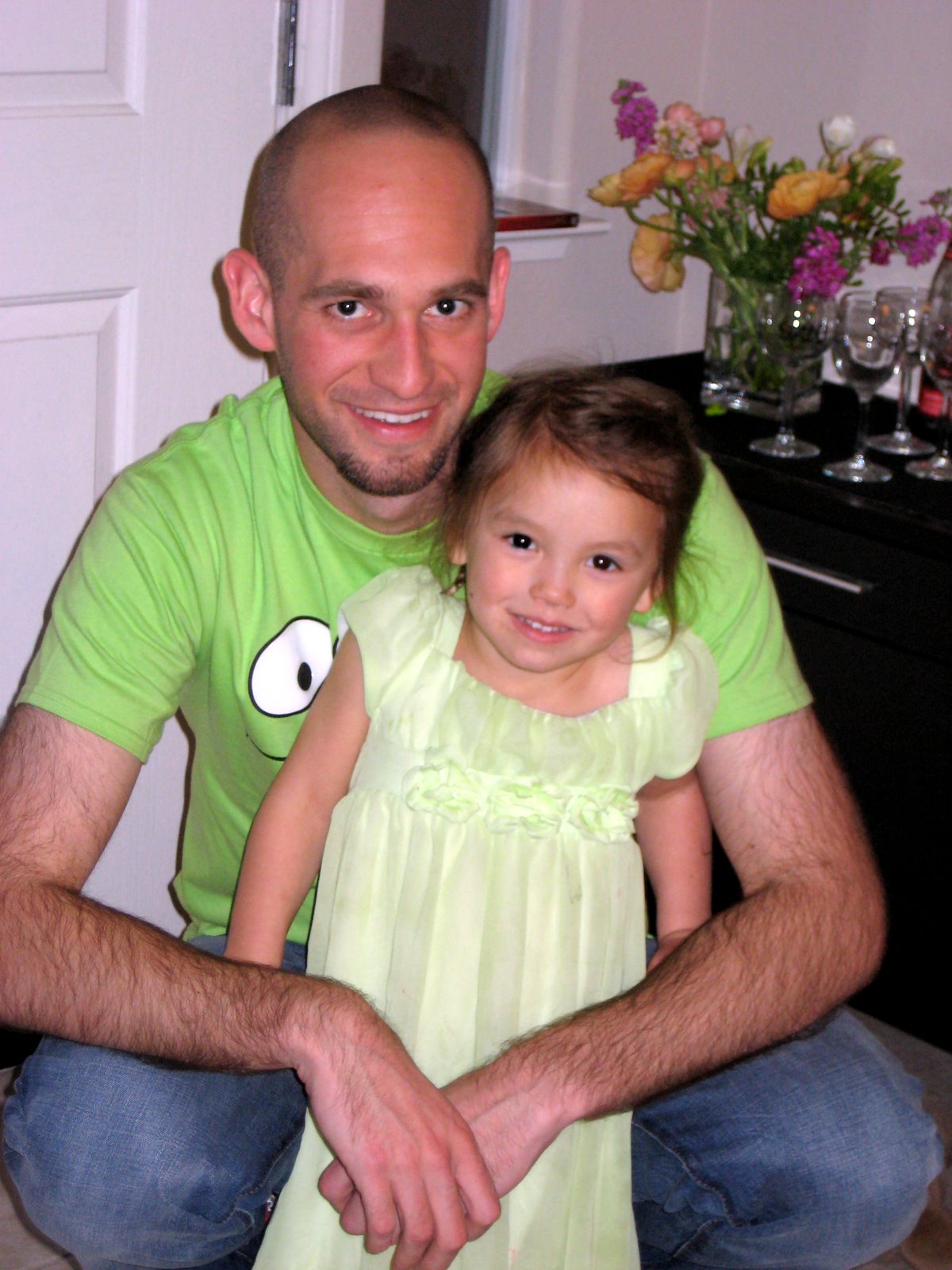 loves uncle Nick. On easter, both Nick and Zoe wore bright green outfits, so we took a picture of the twins! So cute!
